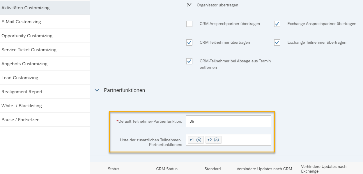 With this release we have added the option to define several additional attendee roles via the admin cockpit in order to also synchronise business partners who are entered in the appointment with a different role than "attendee". This is a free text field in which the technical key of the desired roles can be entered (confirm each role with <Enter>).