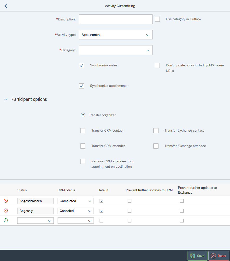 The attendee options in the Activity Customizing can now be collapsed and expanded. Which makes the interface more intuitive and clear.