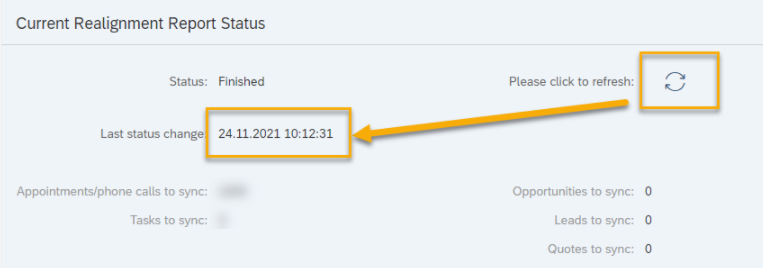 The timestamp for the last status change of the Realignment Report was not updated due to an error. Not even when you tried to update it manually. The problem has been fixed.