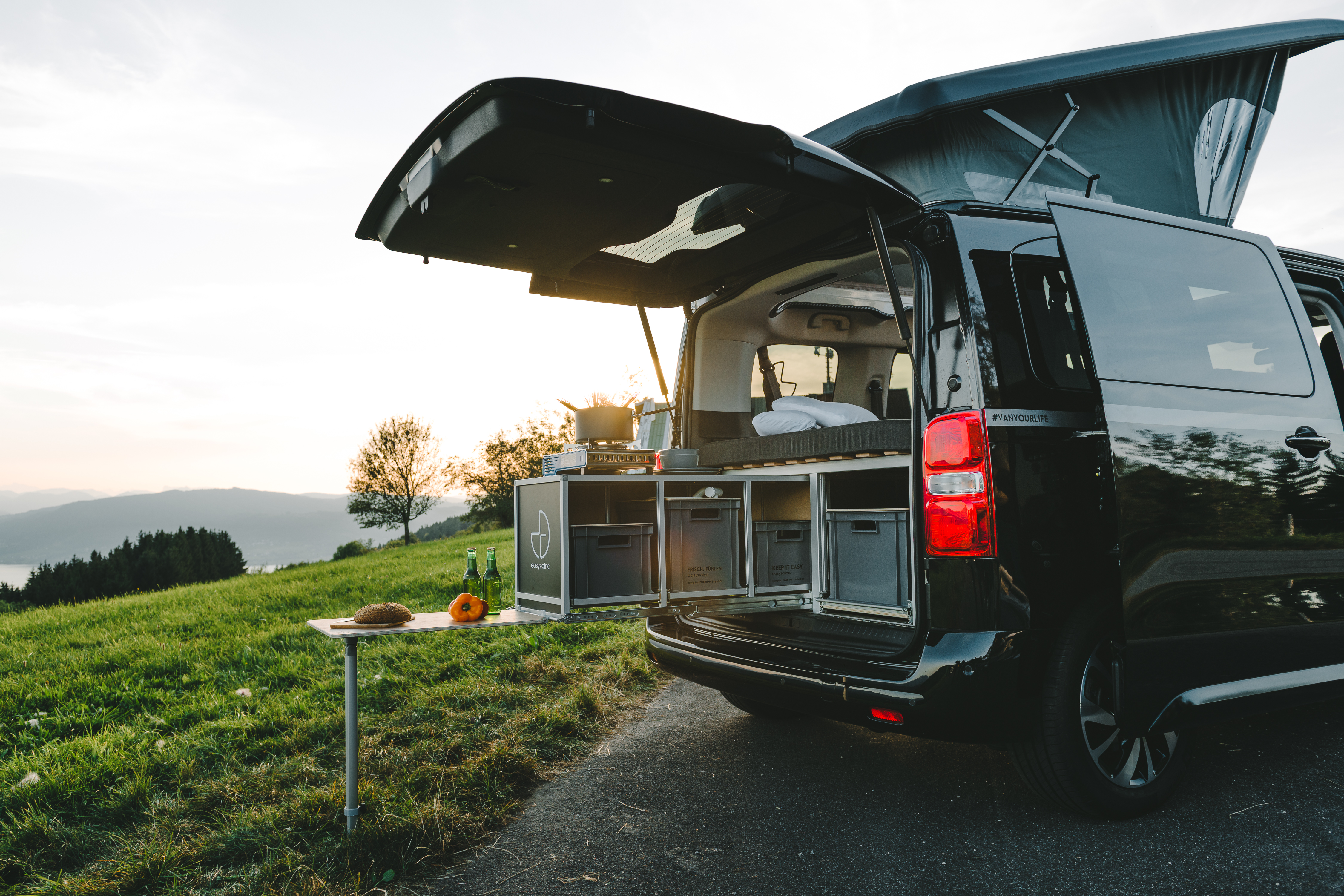 Jeder entscheidet selbst, was im Camper alles gebraucht wird – ein Küchenmodul oder eine zweite Sitzreihe, damit du auch trotz eingebautem Modul Platz für fünf Personen hast.