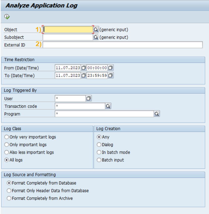 Mit diesem Release haben wir auf S4 Seite ein Logging hinzugefügt. Sie können es über die Transaktion SLG1 aufrufen. Wählen Sie hier als Objekt (1) bitte /NAG/CONNECT und unter (2) als externe ID können Sie dann die Objekt ID angeben (Kontakt ID / Aktivitäts ID).