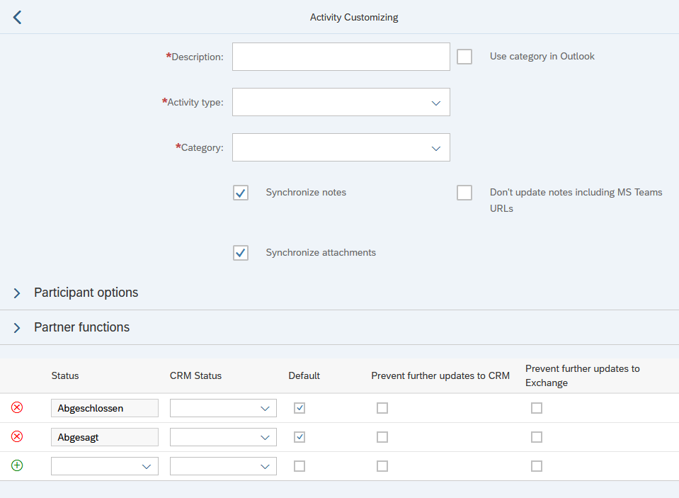 Also the partner functions for the contact and attendee synchronisation can now be configured.