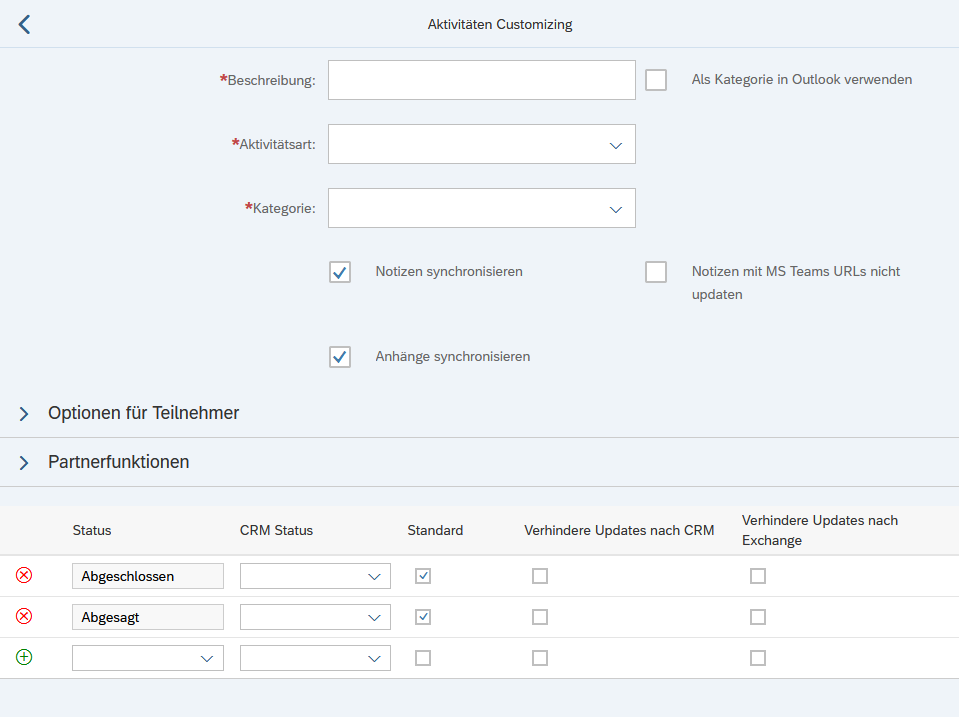 Zudem können jetzt auch die Partnerfunktionen für die Kontakt- und Teilnehmersynchronisation konfiguriert werden.