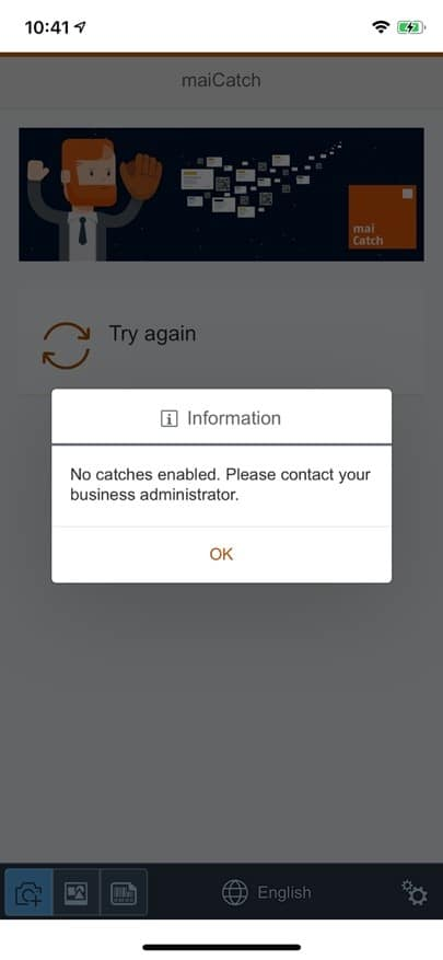 Wenn Sie im Admin Cockpit keinen Catch aktiviert haben, dann erscheint in der App folgende Meldung: