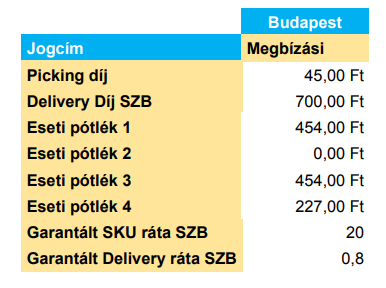 Picking díj: a megrendeléshez tartozó teljesített SKU szám (egy vonalkód alatt lévő termékek)